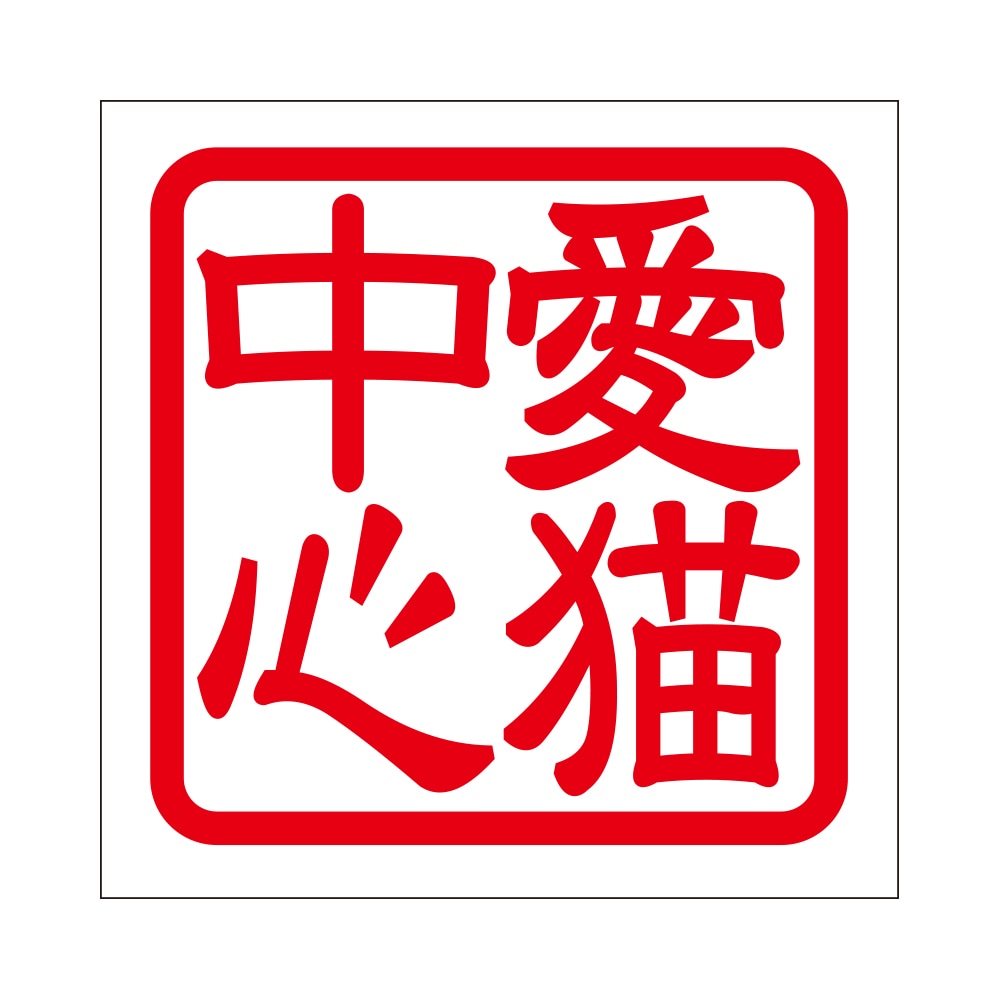 角印 ステッカー 愛猫中心 アイビョウチュウシン 抜き文字タイプ レッド 2枚入 KIS-777
